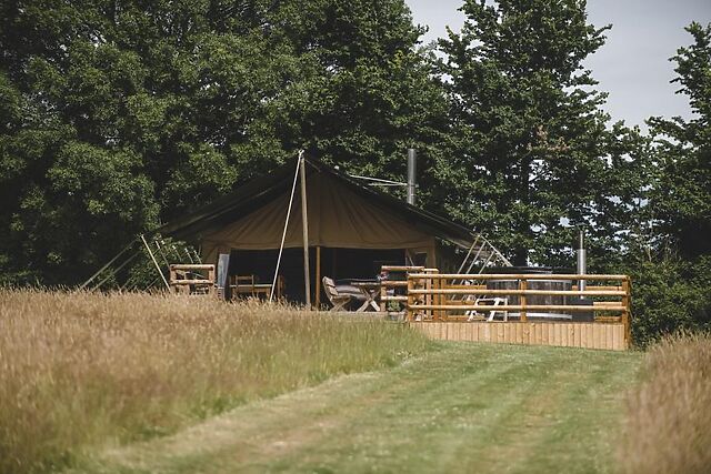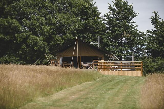 Adjacent to the glamping field is a centuries-old three-acre oak and bluebell woodland, which is private to the farm, where children can dam streams, make dens and play hide-and-seek, it's also perfect for dog walking. With eco-friendly features, a welcoming atmosphere and plenty of space to unwind, this safari tent is the perfect base for a memorable glamping getaway.