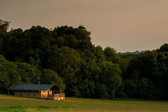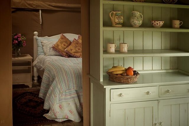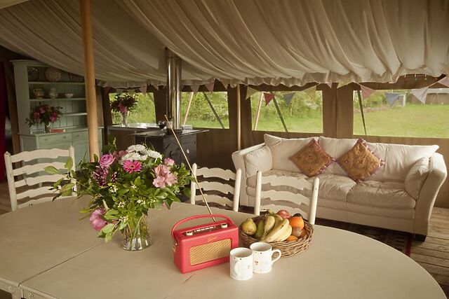 Set amid the tranquil hills of West Hill near Ottery St Mary, in a spacious seven-acre meadow with only five glamping tents in it, allowing lots of privacy and space for children to play, this inviting safari tent captures the very best of Devon glamping. Blending natural beauty with creature comforts, it’s an ideal retreat for those looking to disconnect and immerse themselves in the great outdoors.
