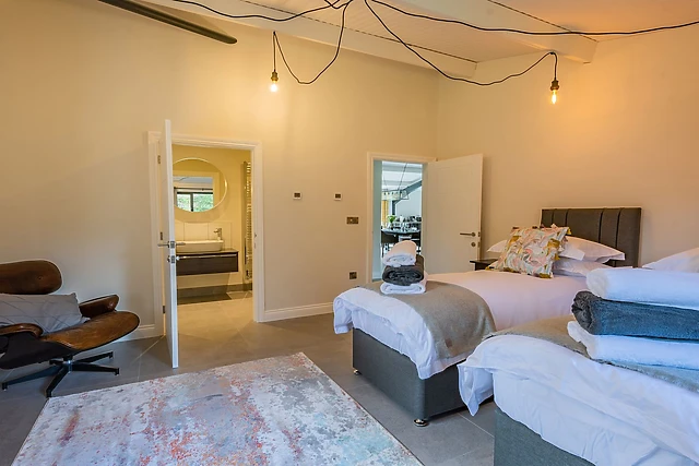 Escape to the serene Quantock Barn, a luxurious retreat nestled in the heart of the East Devon countryside. This single-storey haven sleeps six guests across three elegantly designed bedrooms, each boasting its own en-suite for maximum privacy and convenience.