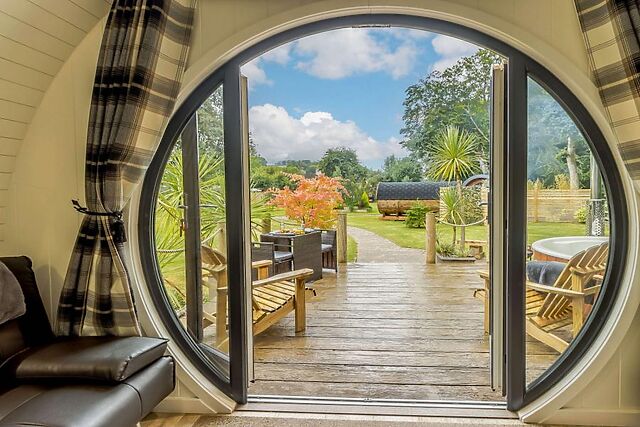 Escape to the River Avon Retreat, a charming pod nestled in the Devon countryside, ideal for couples seeking a romantic getaway. This unique accommodation sleeps two and offers a luxurious experience with a private hot tub under the stars.