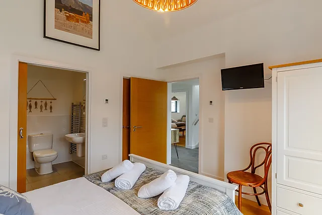 The heart of the home is the vaulted open-plan lounge/kitchen/diner, complete with a stylish wood burner and large bi-folding doors leading to the balcony. The kitchen is fully equipped for your culinary adventures, and the property boasts a private hot tub, adding a touch of indulgence to your stay.