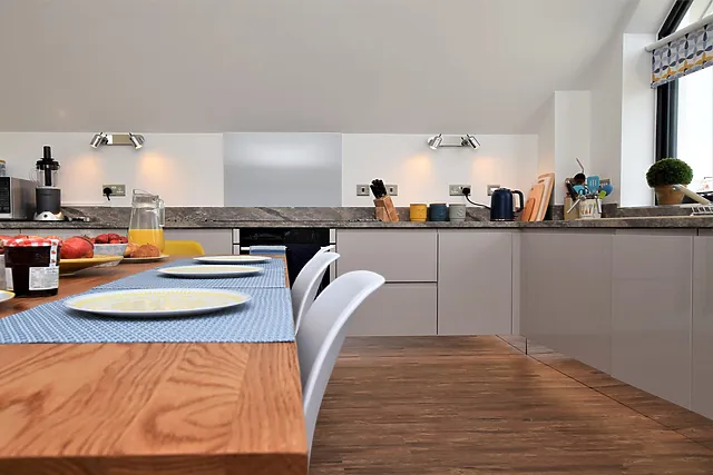 Indulge in the ultimate relaxation with a private hot tub nestled in the fully enclosed garden, perfect for unwinding after a day of exploration. The reverse-level accommodation boasts a spacious open-plan lounge/kitchen/diner on the first floor, complete with a Smart TV and a well-equipped kitchen for culinary adventures.