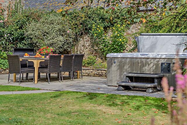 Yes, the accommodation features a private hot tub, offering a luxurious spot for guests to relax and enjoy the outdoors, adding an extra touch of indulgence to their stay.