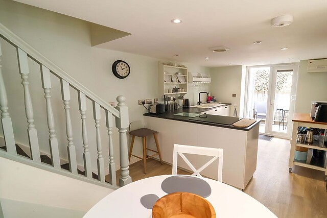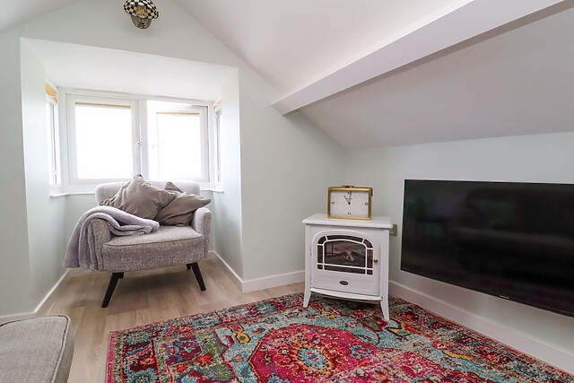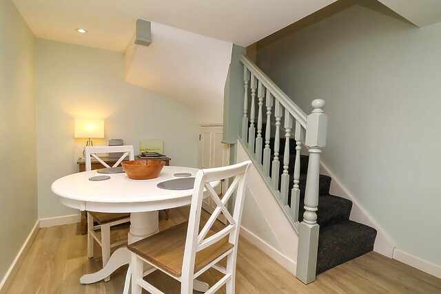 The well-equipped kitchen/diner includes everything needed for home cooking, from an electric oven and hob to a microwave, fridge with ice box, slimline dishwasher, and a coffee maker, ideal for leisurely breakfasts or intimate dinners. Step outside into the enclosed courtyard garden, where the two-seater hot tub invites you to unwind under the open sky, surrounded by the gentle ambiance of the coast.