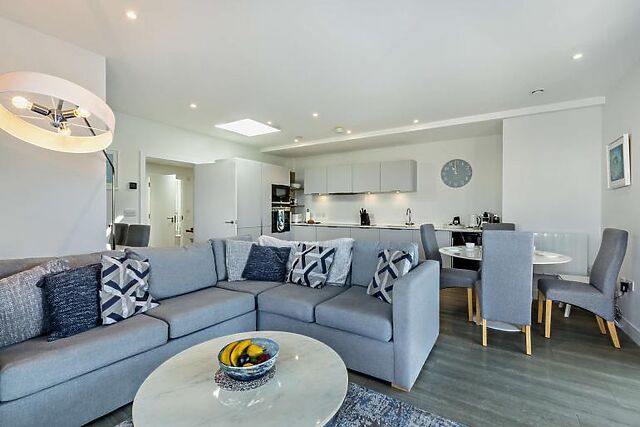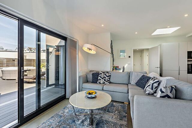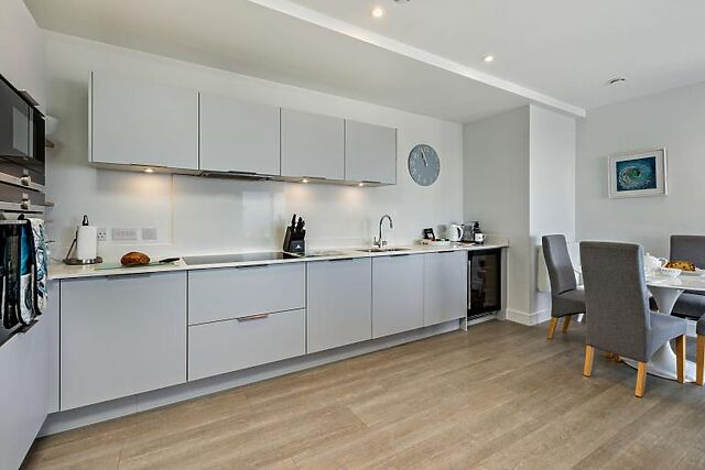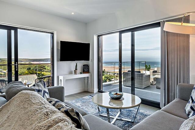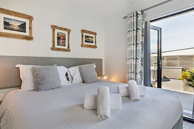 Relax in the open-plan lounge/kitchen/dining area, where you can unwind on sumptuous sofas while taking in stunning sea views. The modern kitchen is fully equipped for preparing your favourite meals, and the patio doors open to let in the refreshing sea breeze.