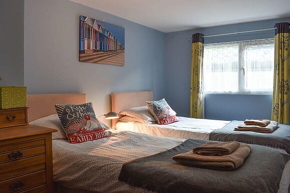 The lodge sleeps a maximum of four guests. It has two bedrooms one double (4ft 6in) and one twin with two single beds (3ft each).