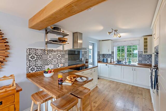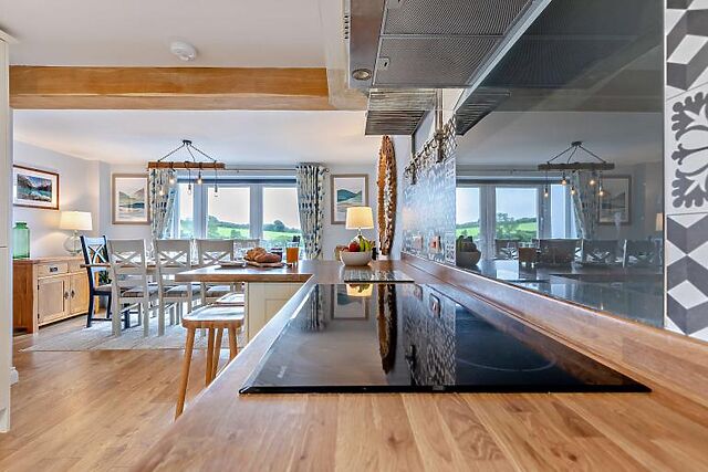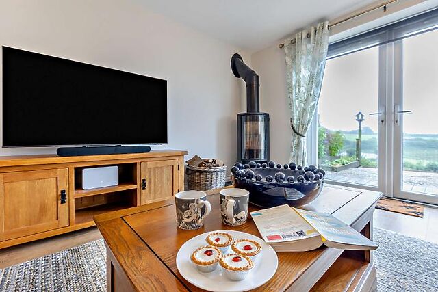 Step inside and be greeted by a stylish kitchen and a cosy lounge with comfy sofas and a wood burner.