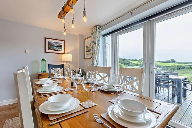 Step inside and be greeted by a stylish kitchen and a cosy lounge with comfy sofas and a wood burner. The lounge features a Smart TV, perfect for unwinding after a day of exploring. The ground floor also has a snug room for children and a convenient WC.