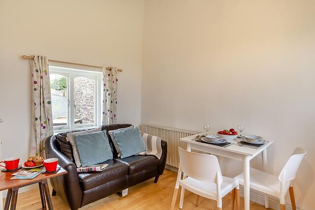 Outside, there’s a seating area where you can sip your morning coffee or relax in the evening while taking in the peaceful rural surroundings. During your stay, you’ll also have access to the excellent shared facilities on-site, including a heated outdoor swimming pool (open from Easter to the end of September), a hot tub and a tennis court, all adding an extra layer of enjoyment to this restful countryside escape.