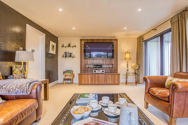 Inside, the open-plan living area exudes elegance, with a well-equipped kitchen ready for culinary adventures. The conservatory provides a serene spot for relaxation, while the sumptuous lounge with Sky TV invites cosy evenings in.