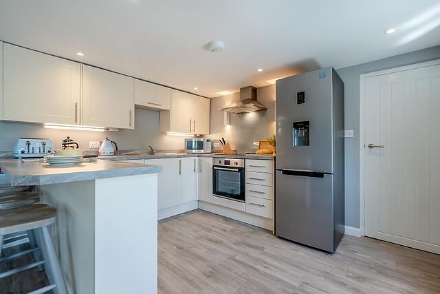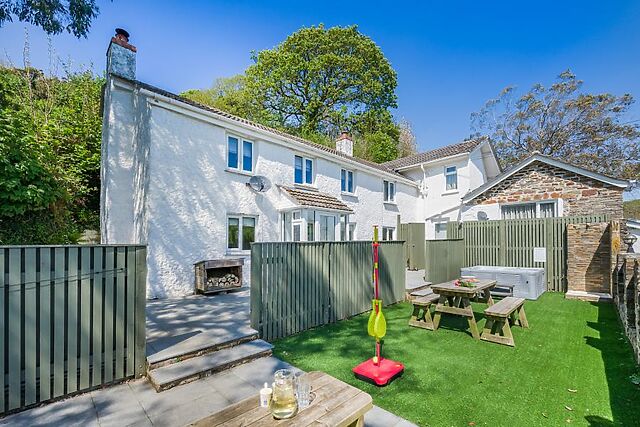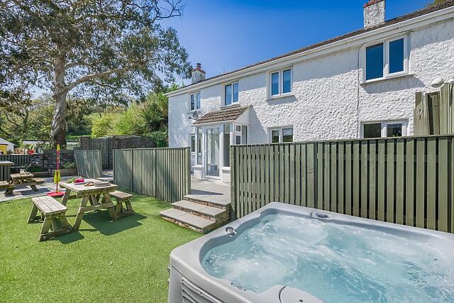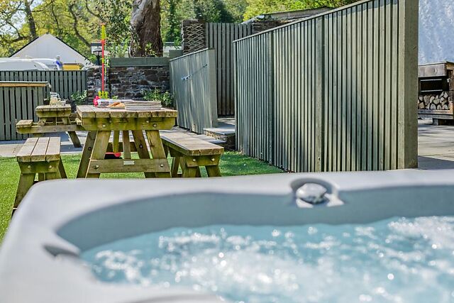 Outside, the split-level garden has a lovely patio with ample outdoor furniture and a refreshing hot tub. Private parking is available for two cars.