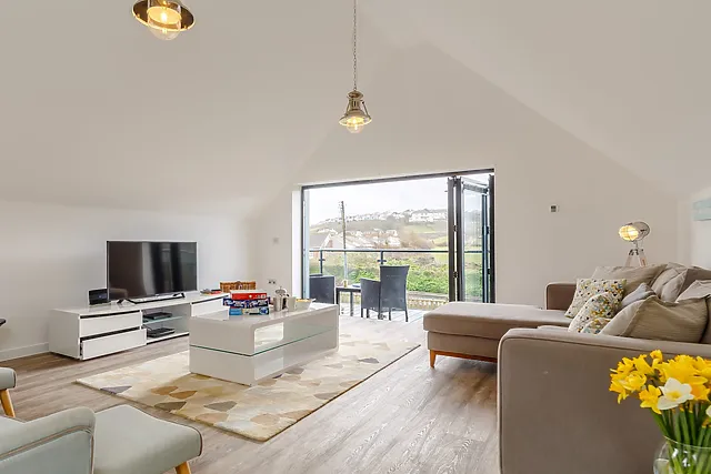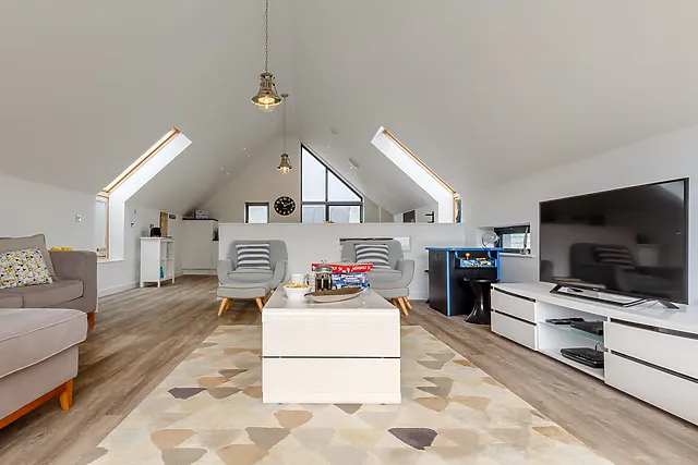 Designed with a reverse-level layout, the property boasts a spacious and bright open-plan lounge/kitchen/diner on the first floor, leading out onto a balcony where you can savour the views.