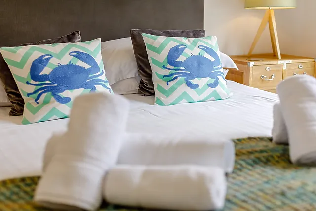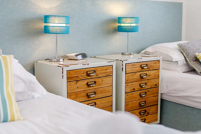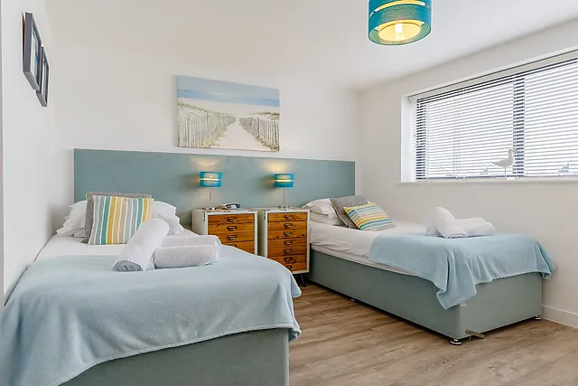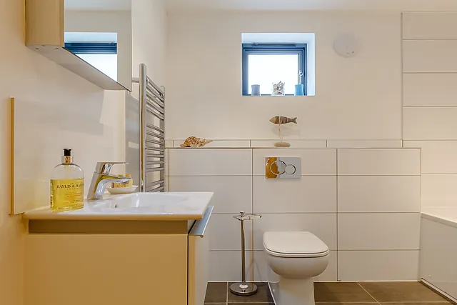 The ground floor houses three cosy bedrooms, two king-size with en-suite facilities, and a twin zip-and-link for flexible sleeping arrangements.