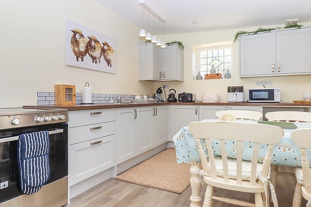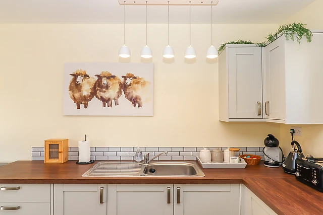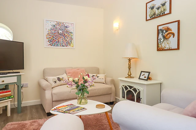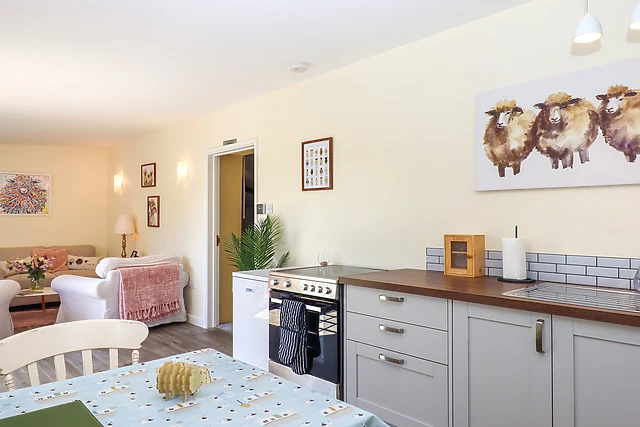Upon entering your new home away from home you’ll be warmly welcomed by the open-plan living room, fitted with a kitchen, dining area and sitting area. This space is filled with a Smart TV, meaning the two of you will never be behind on any of your favourite shows while away, a dining area where you can enjoy those lovely home-cooked meals, and a relaxing sitting area to unwind in after the day’s adventures.