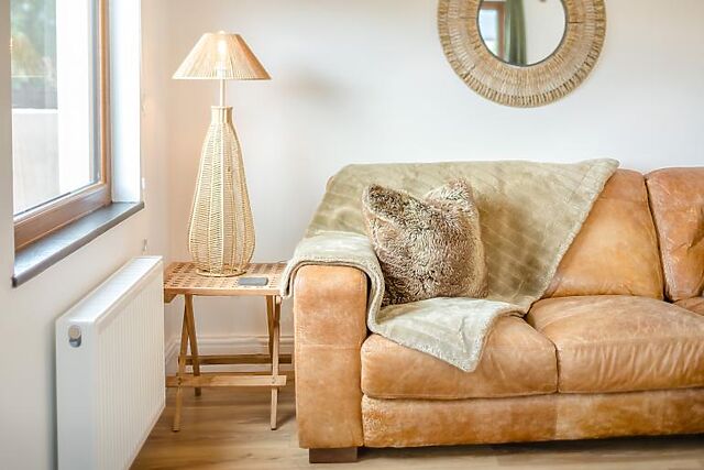 Outside, the large enclosed patio is a highlight, featuring a wood-fired hot tub where you can relax and enjoy the stunning Devon sunsets. Comfortable outdoor seating and a dining area make it an ideal space for al fresco meals and drinks.