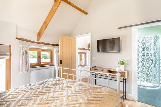 The accommodation features a king-size bedroom with an en-suite shower room, ensuring a comfortable and luxurious stay.