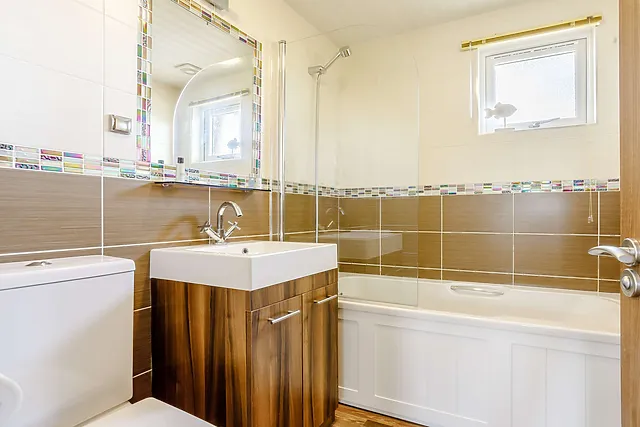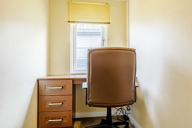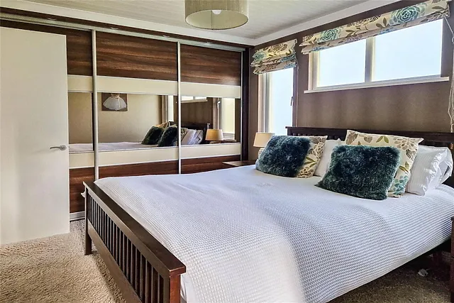 The lodge boasts two well-appointed bedrooms, one with a double bed and an en-suite shower room, and the other a cosy twin bedroom, ensuring comfortable accommodation for all guests.
