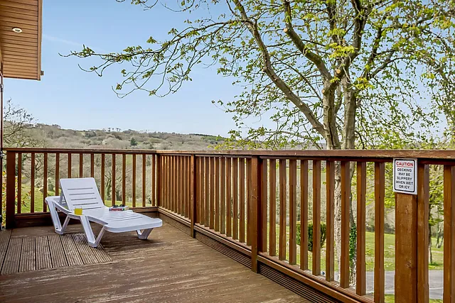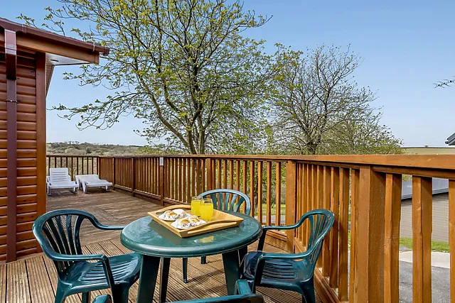 The lodge is family-friendly, offering a travel cot, stair gate, and highchair for younger guests, as well as an enclosed garden and patio area for safe outdoor play and relaxation.