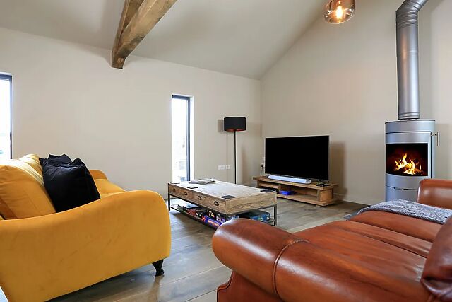 The property is made up of three stone barns with a large front door into a spacious entrance hall with utility room with separate washing machine, tumble dryer and under counter fridge and a downstairs WC. The large sitting room to the right has 3 seating areas consisting of 2 large comfortable sofas situated around a wood burning stove and Smart TV with PlayStation 4 and a soundbar, which can also be used to stream music, here there is also a pool table.
