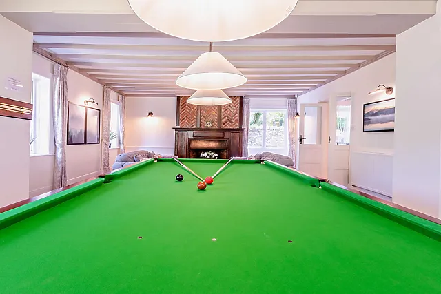 Guests can enjoy a snooker room, a games room with a gaming console and retro arcade machines, and a Smart TV with SkyTV in the lounge and two bedrooms.