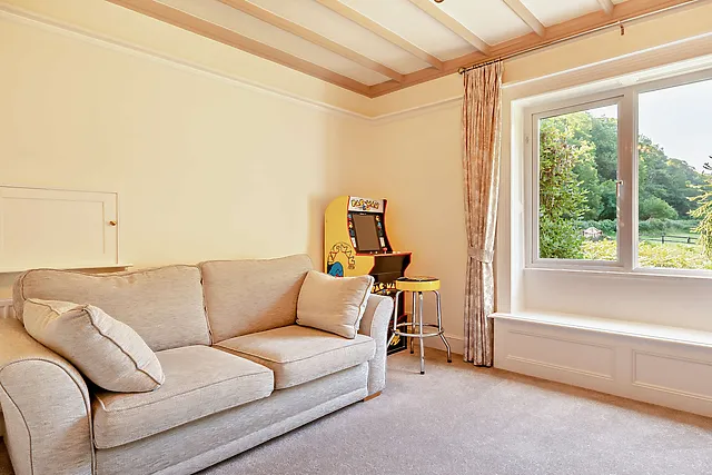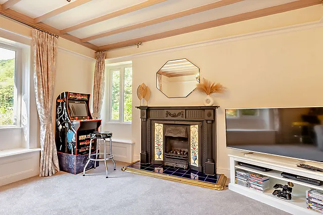 Inside, the cottage exudes charm with its grand dining room featuring a wood burner, a snooker room, and a lounge with an ornamental fireplace. The games room with retro arcade machines ensures entertainment for all ages.