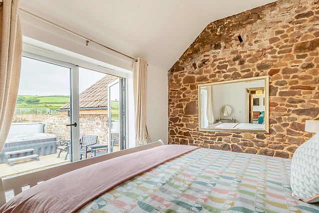 Bi- folding doors that open out into the private courtyard letting the outside in & taking advantage of the stunning views. Find the master bedroom, housing a super-king-size bed and en-suite with French doors leading to the outside.