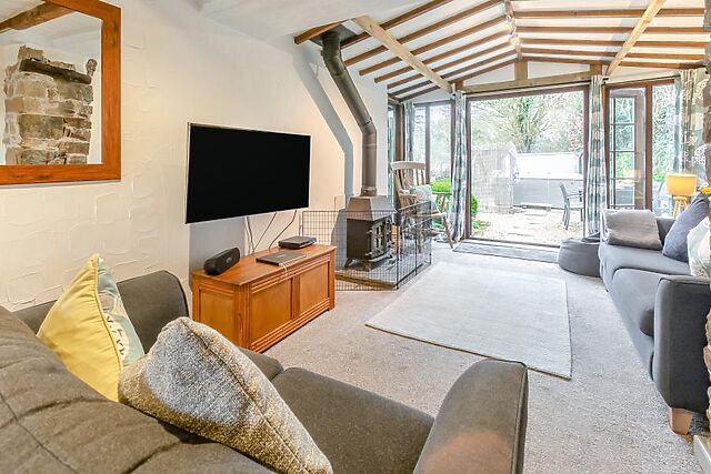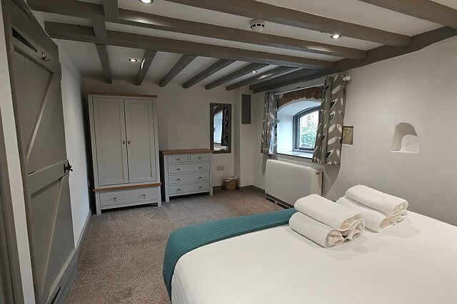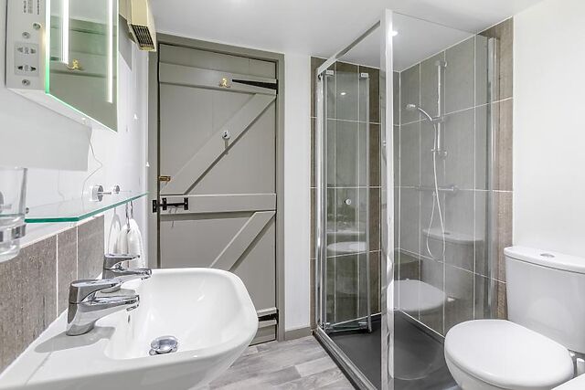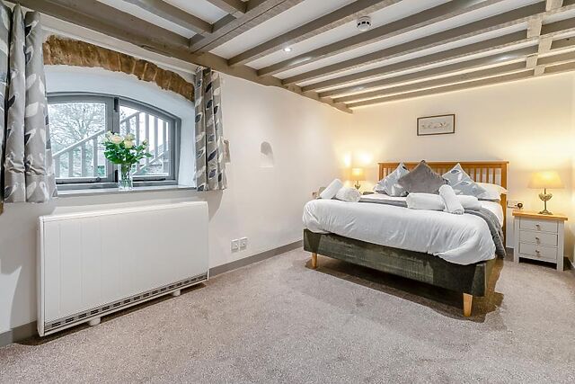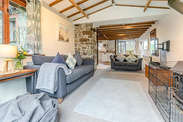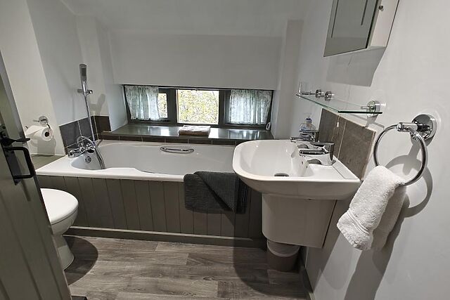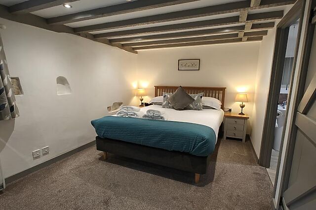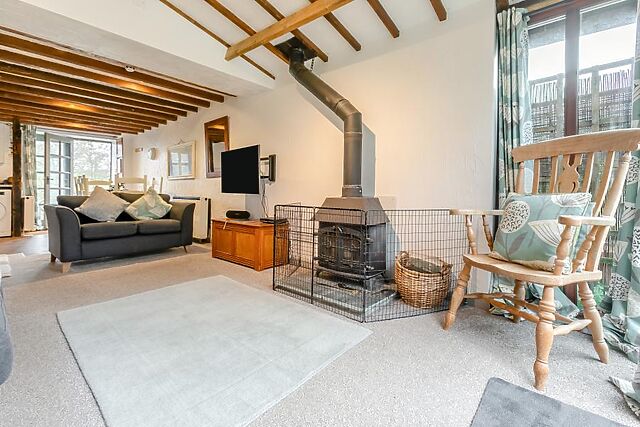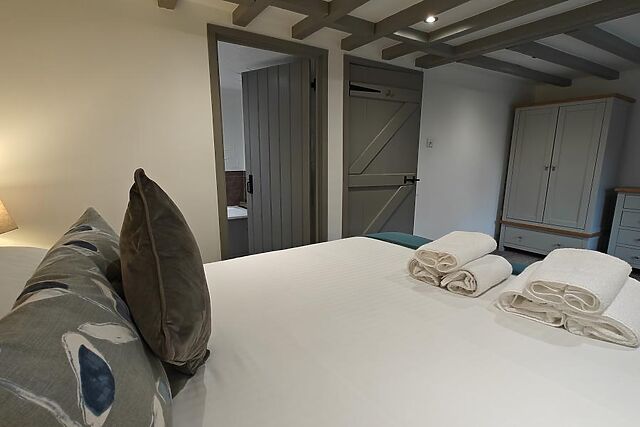 Here, sofas are positioned opposite a Smart TV and a wood burner, setting the scene for cosy nights in. The first of three bedrooms is located downstairs: a lovely king-size with its own en-suite bathroom immediately next door.