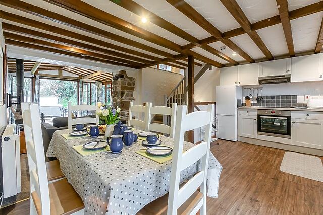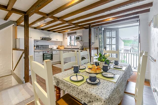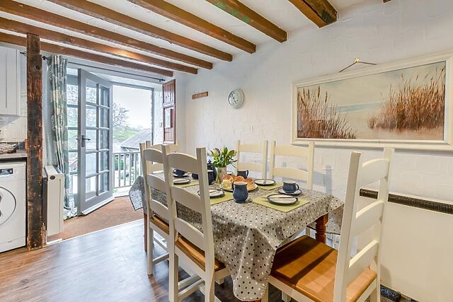 Traditionally styled with original beams, exposed brick walls and winding cottage stairs, this charming holiday home offers a step back in time. Take the external steps up to the first floor and make your way inside.