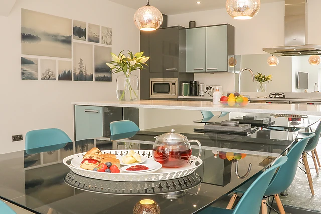 The property boasts a stylish kitchen diner, a cosy sitting room with an open fire, and a grand dining room for memorable group meals.