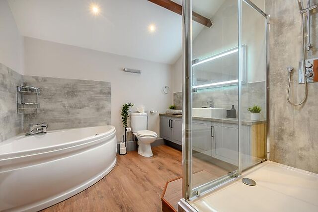 Both spacious bedrooms feature super-king-size zip-and-link beds that can be made up as a twin, offering the ultimate flexibility for your group, while a family bathroom completes the interior. Step outside to the enclosed rear garden where you’ll find a BBQ and a hot tub, and a lawn providing space for children and dogs to play.