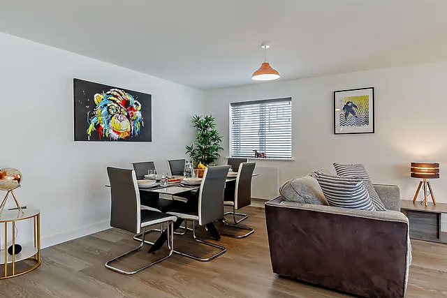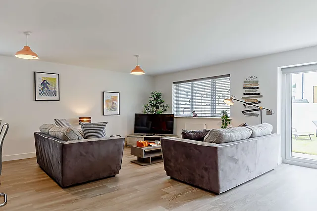 Boasting three stylishly furnished bedrooms, including two king-size and one zip-and-link twin, this property ensures comfort and versatility for families or friends.