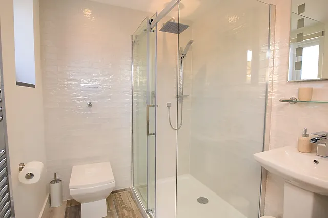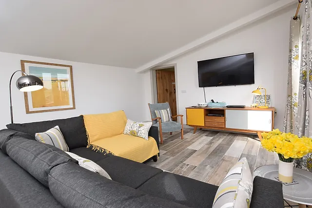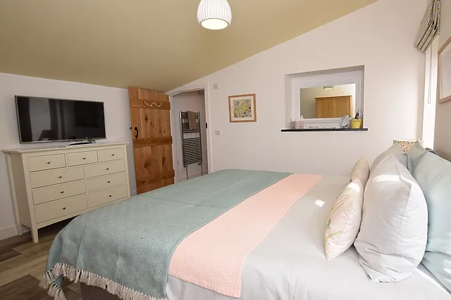 The accommodation features a luxurious super-king-size bedroom with an en-suite shower room, ensuring a restful night's sleep.