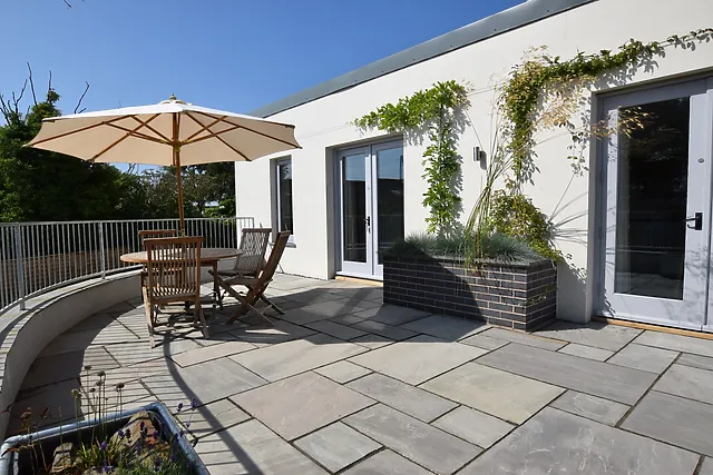 Step outside to your private courtyard, where a hot tub awaits to soak away the stresses of daily life. The property also boasts a beautiful acre-wide wild garden, perfect for leisurely strolls or a BBQ in the great outdoors.