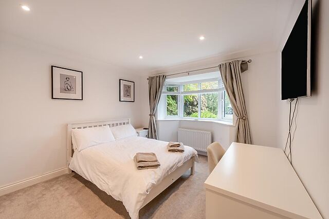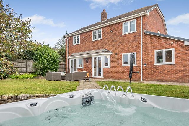 Younger guests will love stepping into the garage for games or taking a dip in the hot tub out in the garden, and those who switch off whilst exercising will be pleased to find some gym facilities available, too. Five bedrooms are split out over both floors, two of which offer en-suite facilities.
