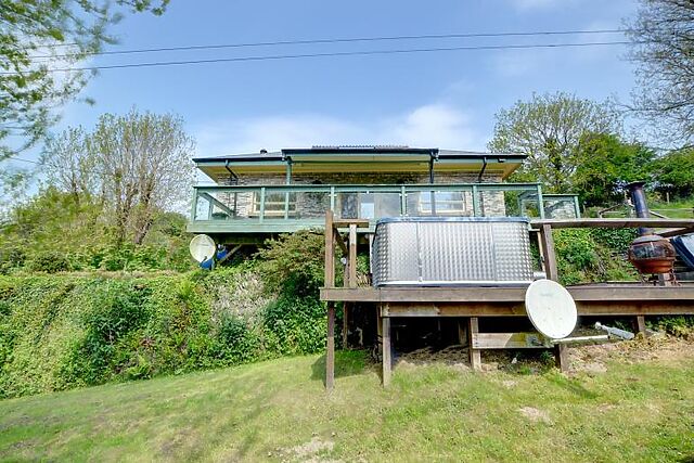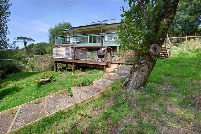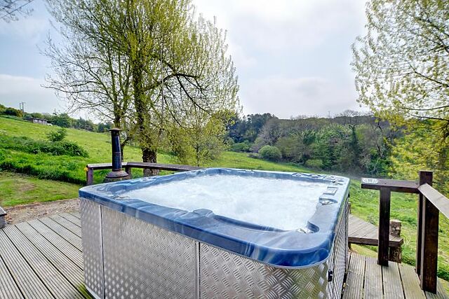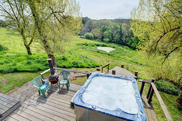 The lower decked area boasts a chimenea and a hot tub, perfect for unwinding after a day of exploring the countryside.