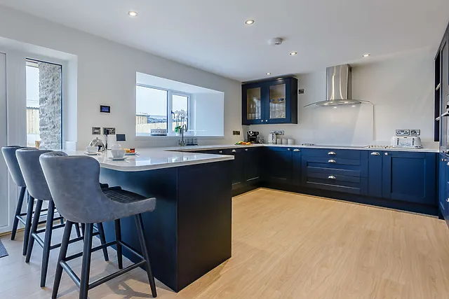 Accommodating up to 10 guests in 5 beautifully appointed bedrooms, each with its own en-suite, this accommodation is perfect for large groups seeking both comfort and privacy. The open-plan design and expansive windows invite the stunning countryside views inside, creating an atmosphere of tranquility and relaxation.