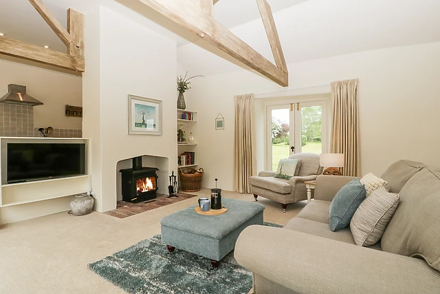 The Shippon boasts a contemporary open-plan living space, complete with a woodburning stove for cosy evenings in.