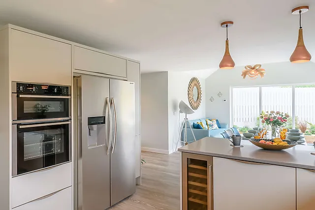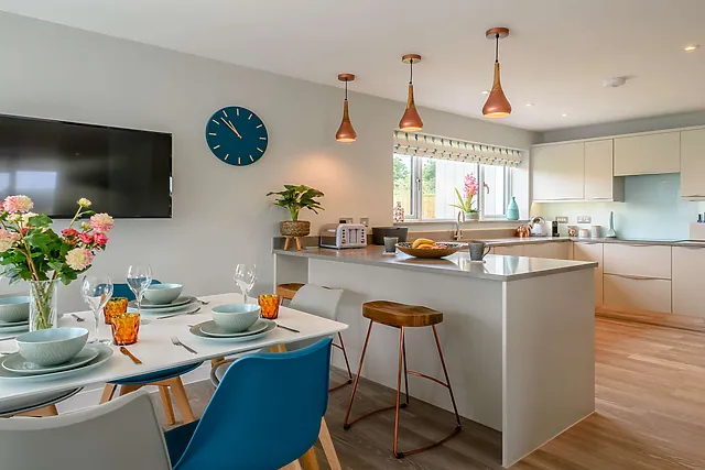 With two bathrooms and a separate WC, comfort is guaranteed for all guests. The open-plan lounge, kitchen, and diner, complete with modern appliances and a breakfast bar, provide the perfect setting for social gatherings.