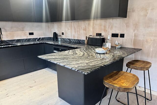 The stylish kitchen area has everything you need for cooking up tasty holiday meals. Along the hallway you’ll find the family bathroom with a bath, handheld shower and WC, plus a restful king-size bedroom.