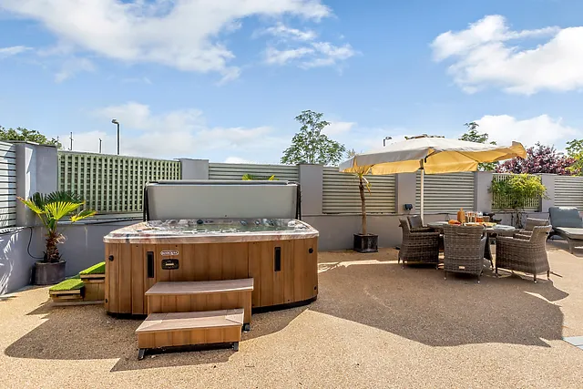 The epitome of relaxation awaits in the form of a bubbling hot tub, providing the ultimate indulgence after a day of exploring.