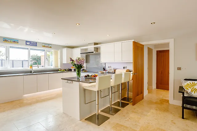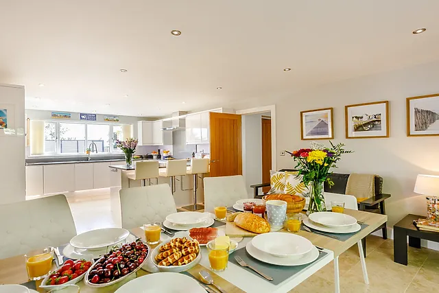 This spacious property can comfortably accommodate up to 10 guests, with 4 super-king-size bedrooms and additional sleeping arrangements available on a sofa bed.