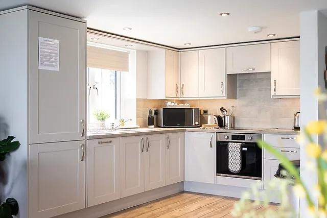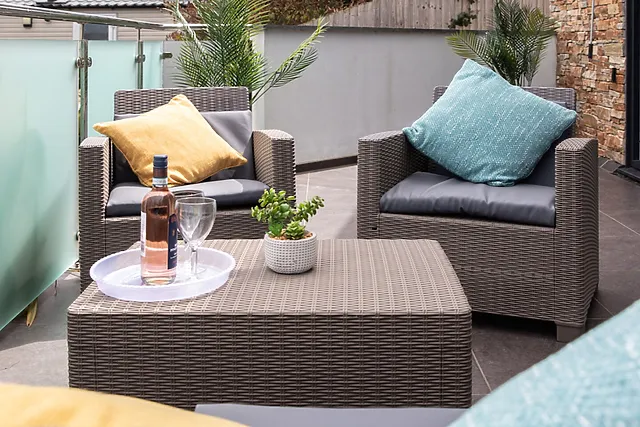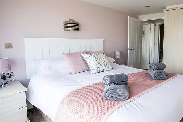 The apartment boasts a chic coastal interior, complete with a sociable open-plan lounge/kitchen/diner, where you can unwind on the corner sofa in front of the Smart TV.