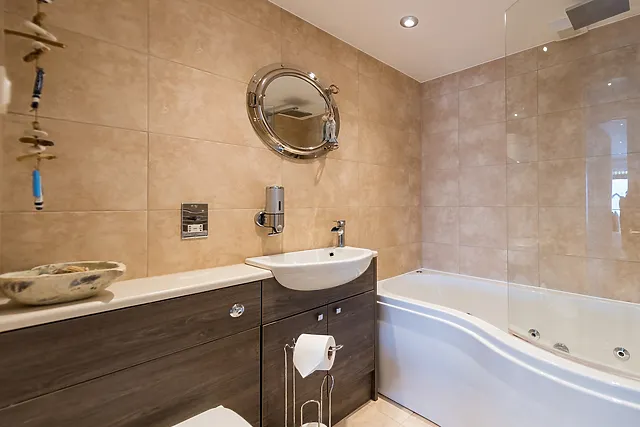 The kitchen is well-appointed, ensuring a delightful cooking experience. Two nautical-themed bedrooms, a luxurious king-size and a cosy twin, each with a TV/DVD and DAB radio, offer restful slumbers.