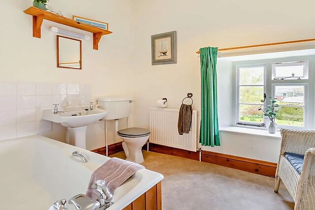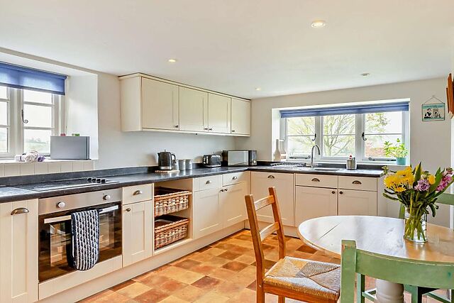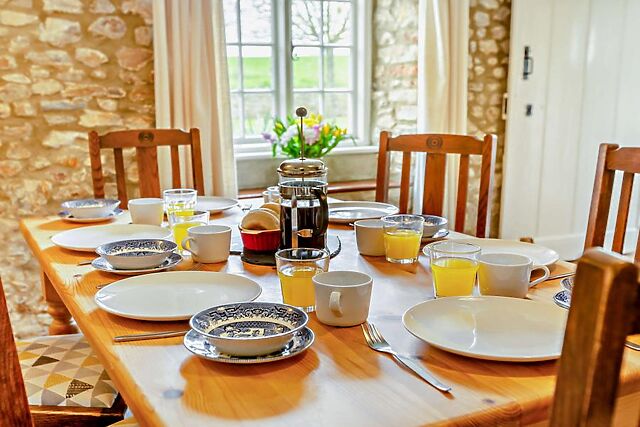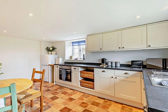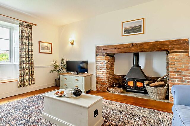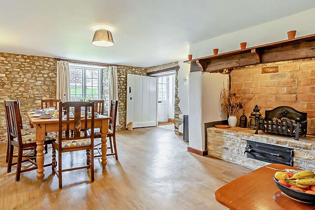 The farmhouse exudes character with original features and offers a cosy lounge with a wood burner, an attractive dining room, and a fully equipped kitchen.