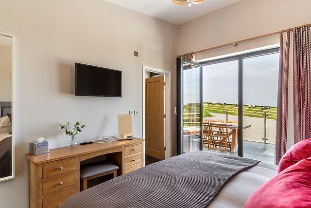 Back inside, find three bedrooms, one super-king-size and one king-size, both with en-suite shower rooms, and one twin. All of them have Smart TVs.