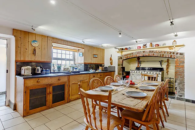 The heart of the home is a spacious kitchen/diner, boasting a feature Aga alongside modern appliances.