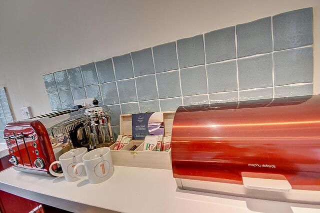 Upstairs, you'll find a super-king-size bedroom, a twin room, and a single room. The contemporary family bathroom features a bath with a shower overhead and heated ceramic tiled flooring.