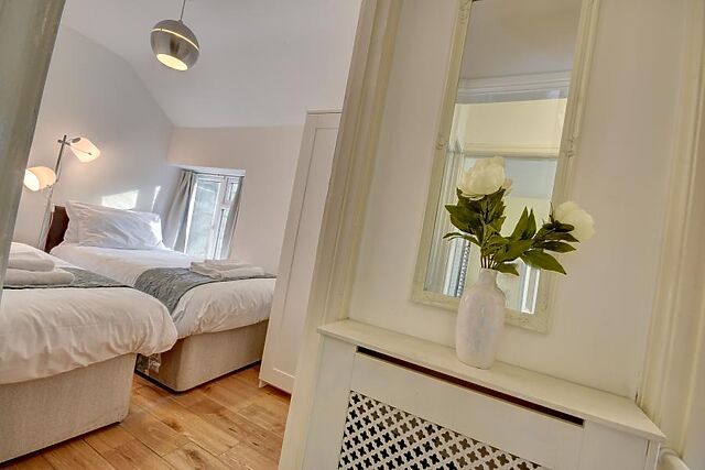 Upstairs, you'll find a super-king-size bedroom, a twin room, and a single room.