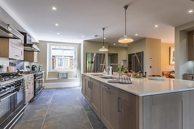 This accommodation is a luxurious and characterful former hotel that has been transformed into a grand cottage, providing a unique and opulent holiday experience.