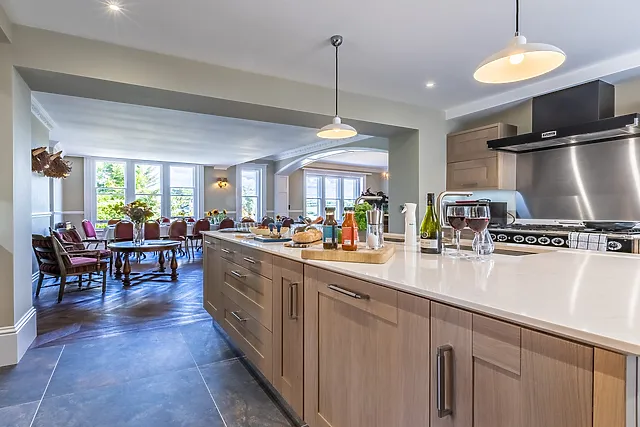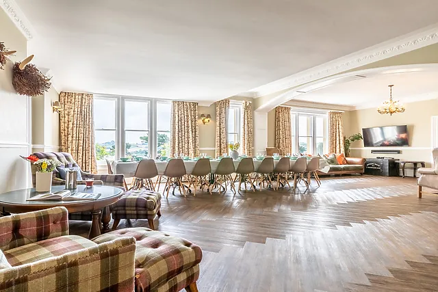 Accommodating up to 20 guests, this expansive accommodation boasts 10 well-appointed bedrooms, each with its own en-suite, ensuring privacy and convenience for all. The heart of the house features a well-equipped kitchen, perfect for culinary adventures, and a dining area that sets the stage for memorable feasts.